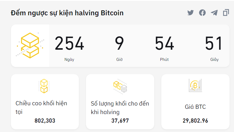 Bộ đếm thời gian sự kiện Chia đôi Bitcoin trên Binance Academy được tính theo công thức sau: